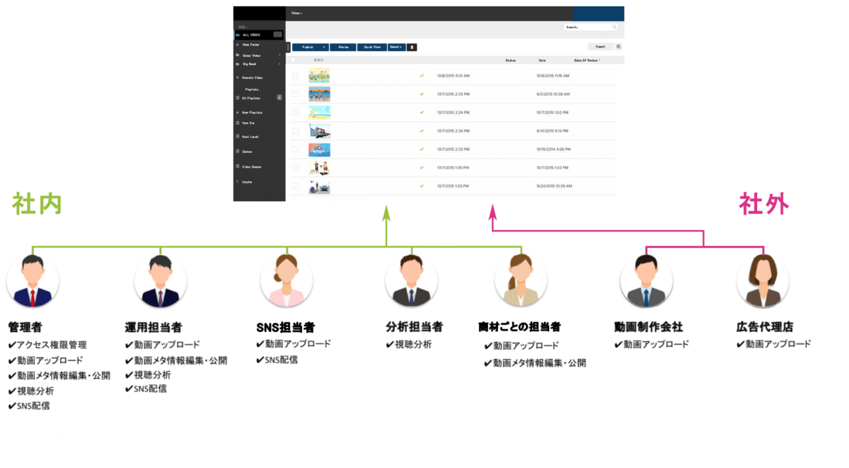 When a company introduces a video distribution platform, it is necessary to design how the system will be operated. In this blog, we will explain what the concept of operational design is, why it is important, and how to decide on the design items related to video management and distribution, including specific design items. ### **Table of Contents** [**①What is operational design?**](#example1) [**②Operational design required for video management and distribution**](#example2) [**③Design items**](#example3) ****①What is operational design? **** —————- Operational design refers to the **creation of a framework for operational tasks**, taking into account the situations and issues that are likely to arise. Specifically, it involves compiling the necessary information for each person in charge of the content, rules and processes of the work that is carried out on a daily, regular or irregular basis. Operational design provides an opportunity to organize and review workflows, and has the benefit of **simplifying, streamlining and optimizing** the overall work, leading to a reduction in the number of man-hours spent on simple tasks and human error. In addition, by making things explicit, you can **avoid making operations dependent on specific individuals or turning them into a black box**. ****②Operational design required for video management and distribution**** —————————- Now let’s take a look at the operational design required for video management and distribution. In this blog, we will assume that the **marketing department is in charge of the video distribution platform** and is trying to achieve the following items * Transferring video files to external and internal parties * Managing your company’s video assets * Distributing videos to your company’s website * Distributing videos to SNS * Analyzing video views In a separate blog post, “4 Steps to Getting the Most Out of Your Video Platform” (https://www. www.brightcove.com/en/blog/2019/12/video-platform-4steps), we recommend checking the types of videos you have in-house, the people involved both inside and outside the company, and the current and ideal workflows for video distribution, and using these kinds of items as a reference will make it easier to design. Furthermore, after considering these points, imagine creating a video management and distribution operation manual, and design in detail who, when, where, and how it will be used. Clearly organizing the target audience and response methods is the first step towards simplifying, streamlining and optimizing the overall operation of the video distribution platform. * **Target audience**: Who will use the video distribution platform? * **Response methods**: When performing tasks such as uploading videos or distributing videos to SNS, what procedures will be used and when? * **Operation manual**: If the above items are compiled into an operation manual, it will be easier to prevent the operation of the video distribution platform from becoming personalized or a black box. ****③Design Items**** ————- From here, we will give examples of the items that should be considered when designing the system. In reality, the structure and scope of implementation will differ from company to company. Please **arrange the items according to your company’s situation**, as you may not only be introducing a new video distribution platform, but also replacing the platform you are currently using. **1. Purpose of Introduction, Requirements Definition** First, **clarify the purpose of introducing the video distribution platform**, and write down the details of what you want to achieve by introducing the video distribution platform. By aligning the perceptions of all those involved regarding the assumptions, you can avoid inefficiencies caused by miscommunication. * **Purpose of introducing a video distribution platform**: To appropriately manage video assets within the company, share videos, distribute videos to the company website and SNS, and analyze video viewing data. Next, let’s move on to the **requirements definition**. List the system requirements. For example, this could include things like operational stability, multi-device compatibility, information leak prevention, and access analysis functions. **2. Workflow and Work Content** Next, in order to clarify the outline of the work that will be achieved through the video distribution platform, let’s **list out the specific work that will be done** and organize how these tasks will be carried out. By covering all the possible work, there is a possibility that you will be able to discover points where you can simplify, streamline, and optimize. * Video file transfer (sharing) * Management and listing of company video assets * Video distribution and updating on company website * Video distribution and updating on company SNS (Facebook, YouTube, etc.) * Video viewing data acquisition and analysis (data analysis linked to other tools) **3. System management** The following are the **recommended items for management** regarding the video distribution platform itself. These are not items that require regular work, like the videos themselves, but rather items that require work only when setting up initially or making irregular changes. * Access privileges for each user * Type of video player (player that displays a single video, player that displays multiple videos side by side, etc.) * Settings for systems that can be linked (access analysis tools such as Adobe Analytics and Google Analytics, * marketing automation tools such as Marketo and Oracle Eloqua, plugins required when linking with CMS such as WordPress and Drupal, etc.) * Contact system in the event of a failure **4. System Operation Structure** Let’s **define a team structure** for actually operating the video distribution platform. It is a good idea to organize users and summarize them in a clear way using diagrams and charts.