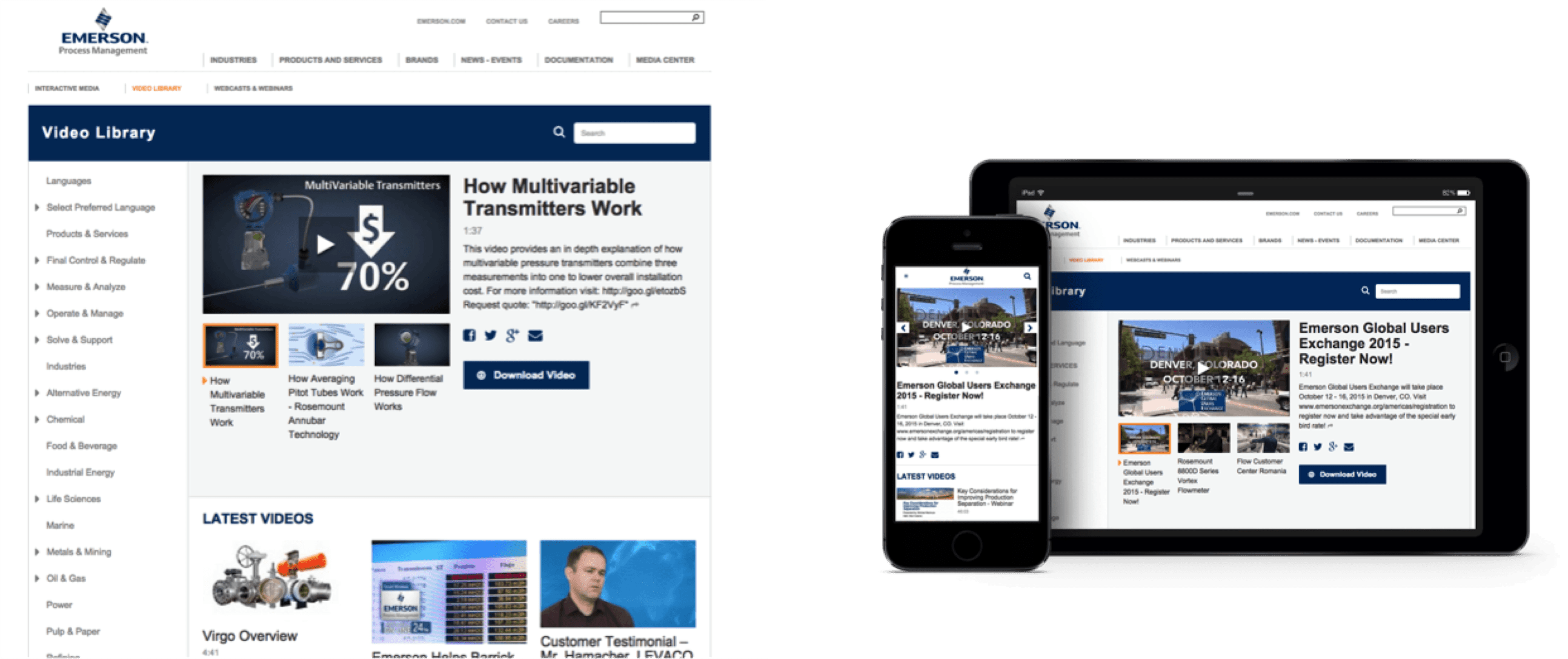 For example, Emerson Process Management uses Gallery to organize and present their 900+ videos. They replaced a homegrown video portal with Brightcove Gallery, launching a video experience that supports the organization’s thousands of videos. Brightcove Marketing Studio lowered web development costs, shifting management and control to the digital marketing team.