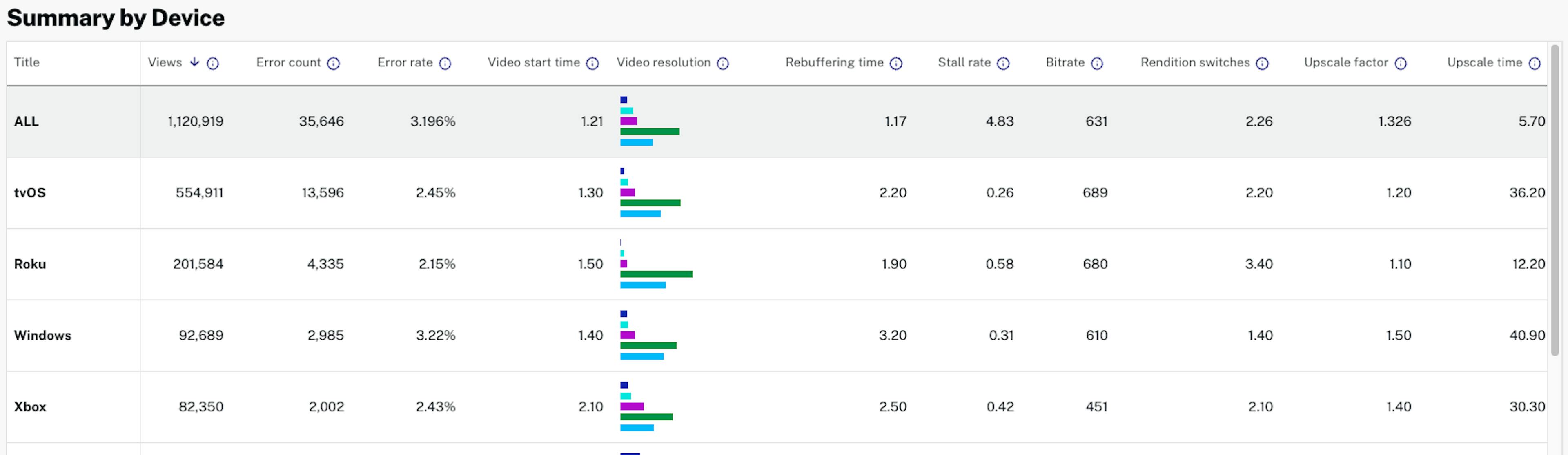 While upscaling time is critical in monitoring quality of experience, there are times when it may not affect the viewer. For example, upscaling often happens when high resolution content is streamed to a 4K TV but not encoded at 4K. Since most viewers won’t notice this, it’s important to dig into the data to determine the reasons behind low upscaling times.