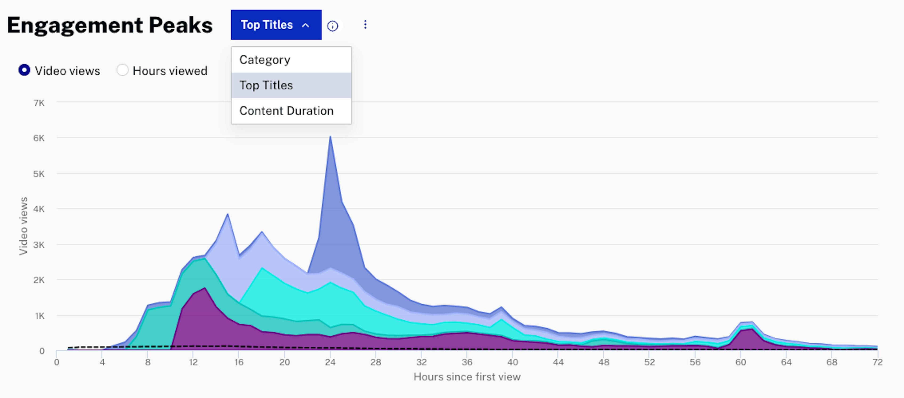 Stories break and develop in different ways, at different times, and with different audiences. Video metrics like Concurrent Viewers, Top Titles, Day Part, and Engagement Peaks help news teams see the most actionable trends and make editorial decisions even faster.