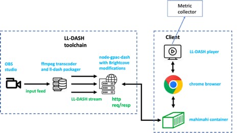 Figure 1 shows the workflows of our low-latency DASH and HLS streaming testbeds.