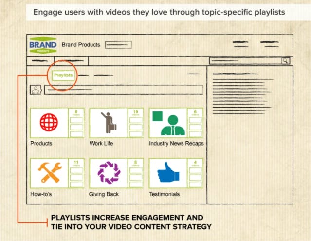 Idéalement, vous devriez héberger une partie de votre contenu sur YouTube et une autre sur votre propre site web. Les vidéos YouTube peuvent être des teasers ou des aperçus qui poussent vers un contenu complet sur votre site. Parfois, plusieurs vidéos complètes peuvent être lues ensemble dans une liste de lecture YouTube. Cependant, elles doivent toujours mener à un centre vidéo complet sur votre site où il existe plus d'options de contenu, telles que des vidéos interactives pour améliorer l'expérience de la marque ou des CTA contextuels pour guider le parcours du client. L'expérience de l'utilisateur est primordiale et les transitions entre les propriétés sont fluides et simples.