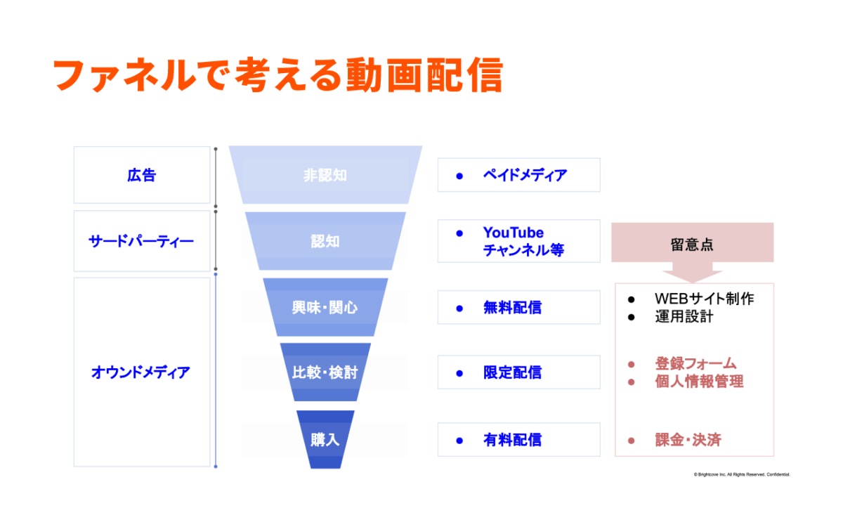 By holding events and seminars for potential customers in the comparison and consideration stages via video, you can analyze detailed viewing data. It will also be easier to decide whether it’s best to just send an automated message or whether you should set up an appointment with a sales representative.