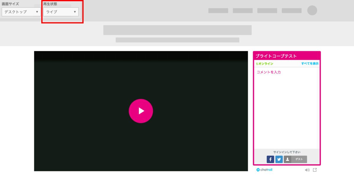 All settings are now complete. The video player for the live stream should now be displayed on your website, with the chat window appearing on the right-hand side. As in the previous section, please enter the guest name (in this case, we have entered ‘Brightcove Guest’) in the ‘Guest’ field of the chat window and sign in.