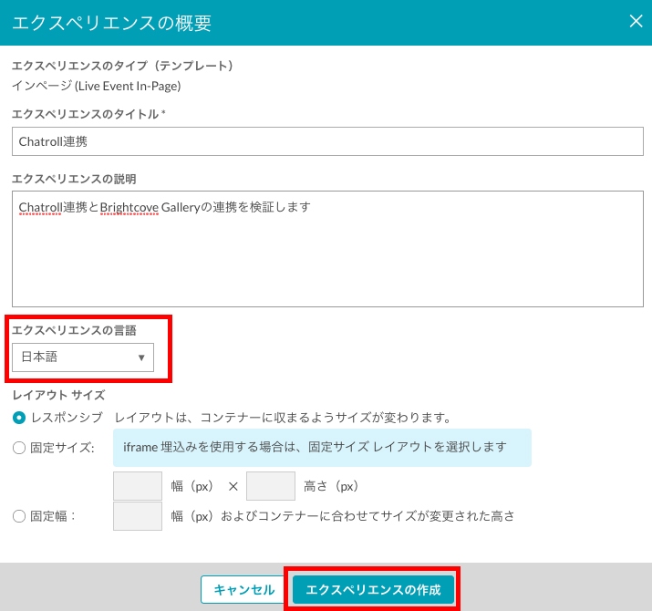 Please enter the “Experience Title” and “Experience Description”, etc., and set the “Experience Language” to Japanese. After completing the settings, please click “Create Experience”. (You can change these settings later.)